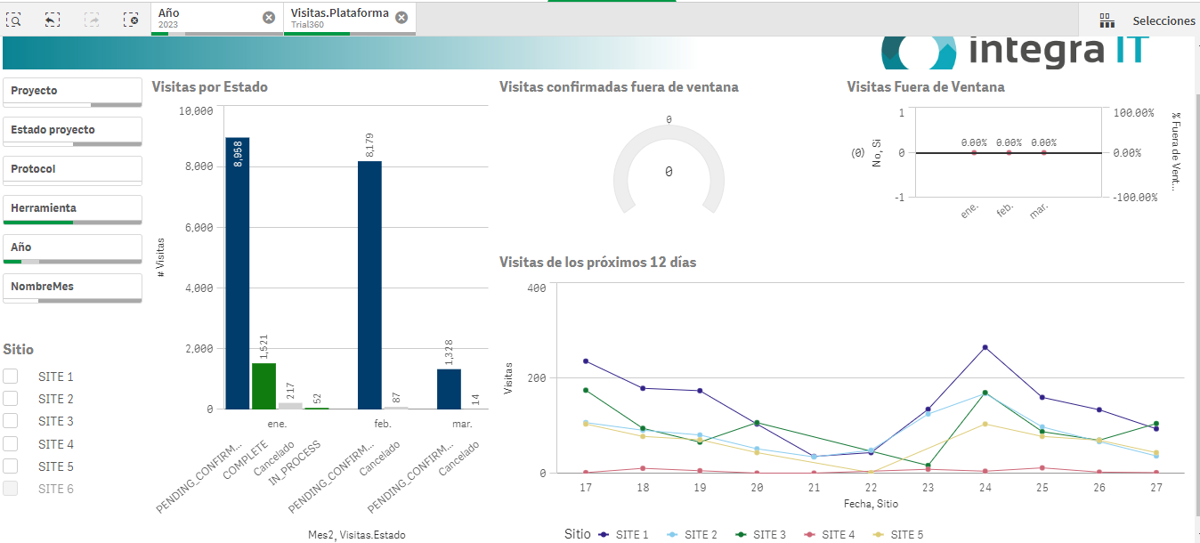 Los tableros de control de Trial360 describen los puntos críticos, facilitando tomar decisiones más rápidas, identificar tendencias, monitorear el progreso de los pacientes y seguir el ensayo en tiempo real. Este nivel de visibilidad de los datos permite una rápida identificación de cualquier problema que pueda surgir, y una intervención y mitigación oportunas.