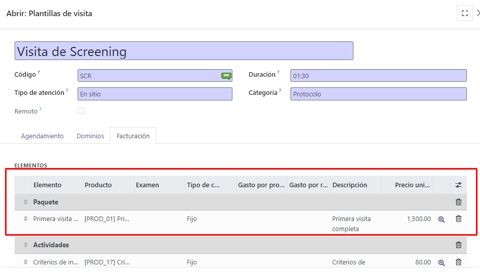 D. Se configuran los elementos a facturar en cada visita con el tipo de cargo que se va cobrar una vez la visita cambie al estado DIGITADO CRF: