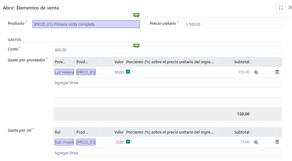 Adicionalmente se puede registrar la distribución del costo, se puede ingresar un proveedor o un rol y pagar un porcentaje o un valor del costo.