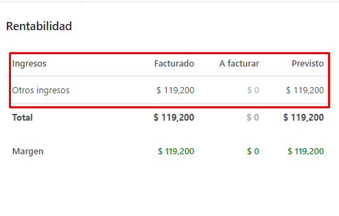 Y esta factura es visible en los ingresos del proyecto.