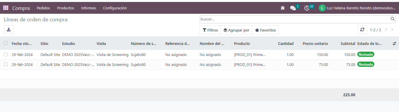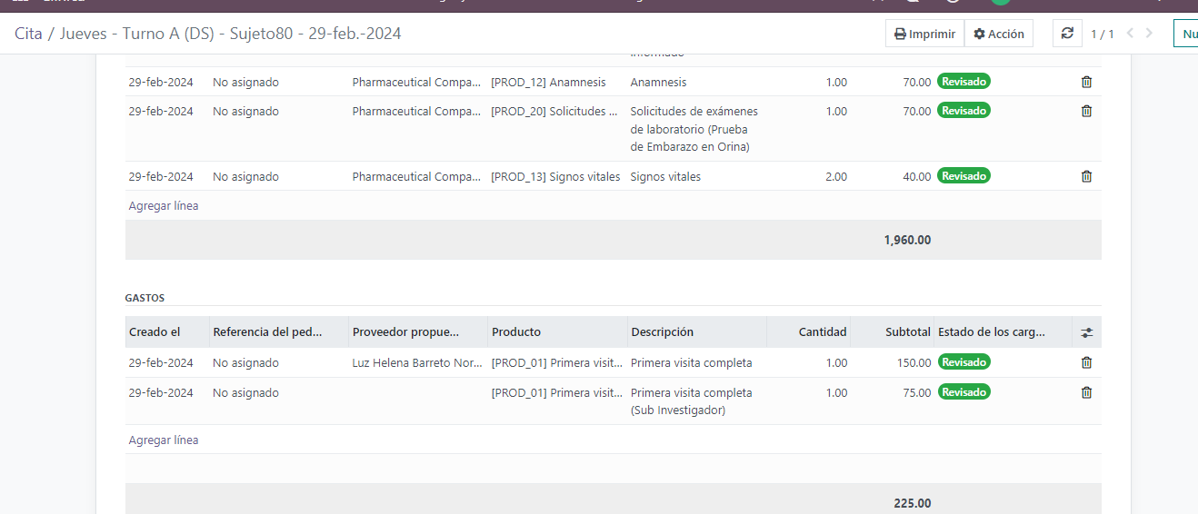 3.1 Para crear los gastos de un proyecto de investigación, en la aplicación de COMPRAS van a caer los gastos asociados a la visita, es posible revisar cada línea