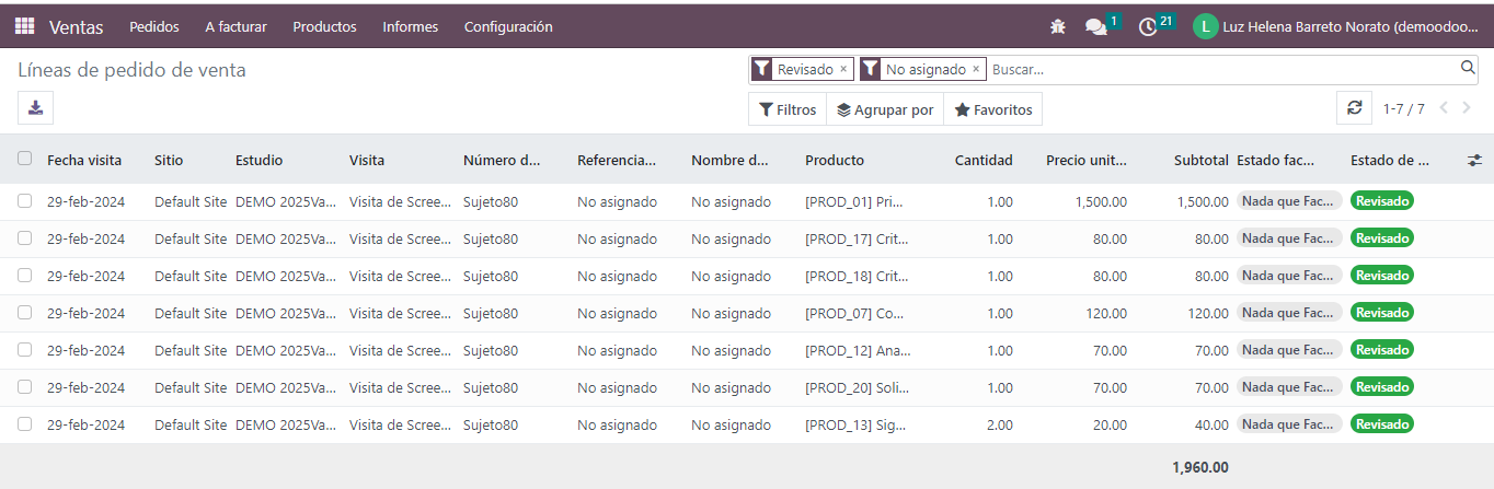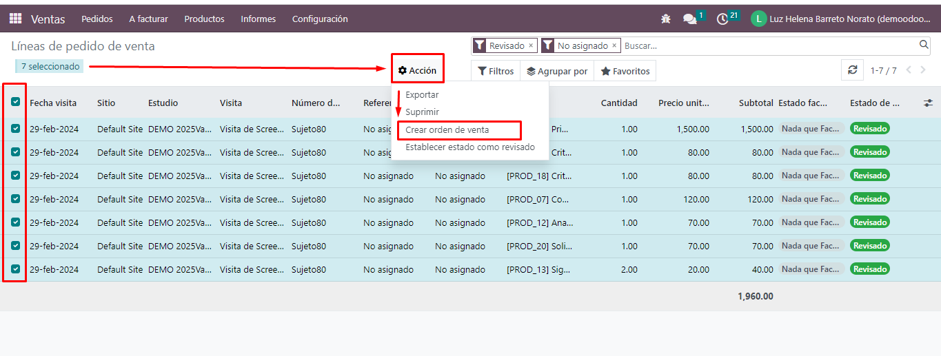 Se seleccionan las líneas y se crea orden de venta (no se pueden crear ordenes de ventas con lineas no revisadas)