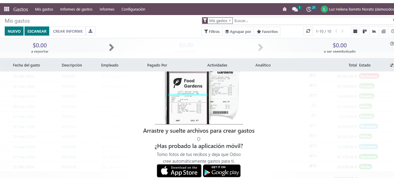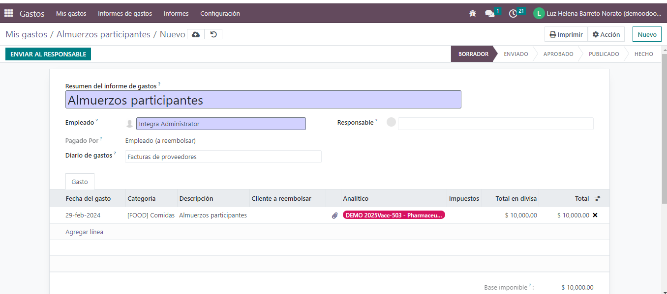 Es posible crear gastos, asociarlos al estudio, enviar al responsable, aprobarlos y publicar asientos