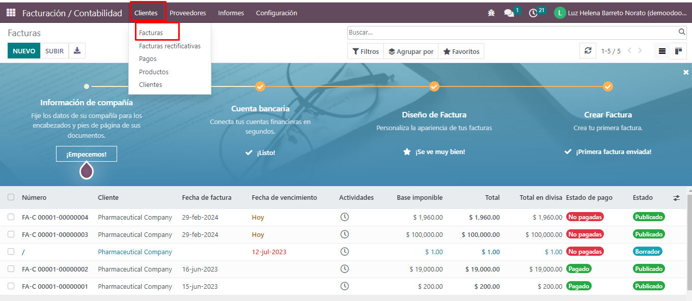 Desde el módulo de FACTURACIÓN/CONTABILIDAD, se pueden ver las facturas a clientes: