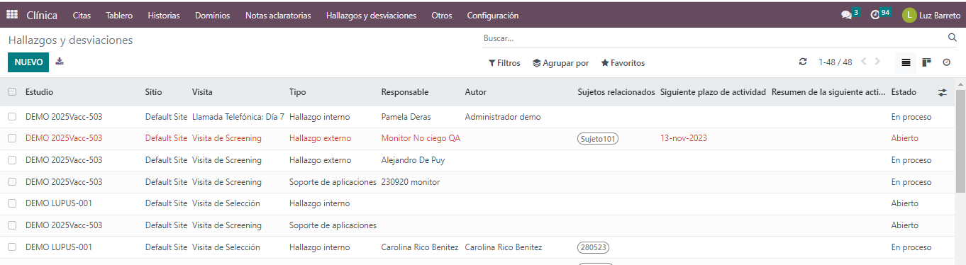- Los roles monitores pueden crear hallazgos y desviaciones, pero solo podrá visualizar los registros creados por si mismo.